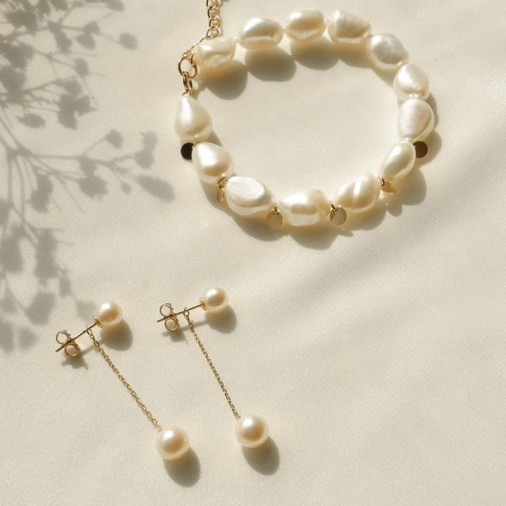 10 MM White Baroque Pearl Bracelet Minimal Jewelry - J F W