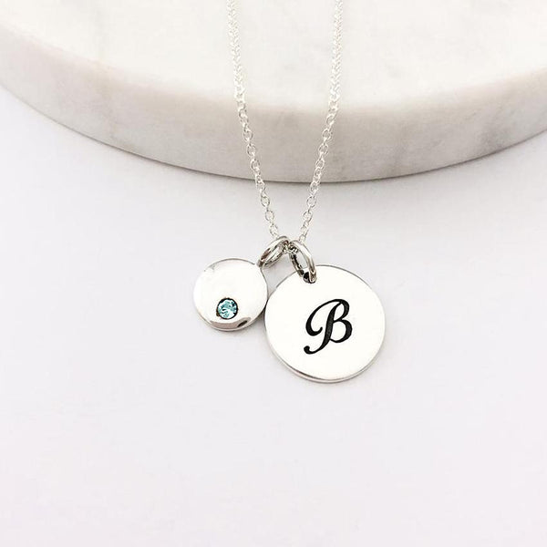 Birthstone Personalized Initial Letter Silver Chain Necklace