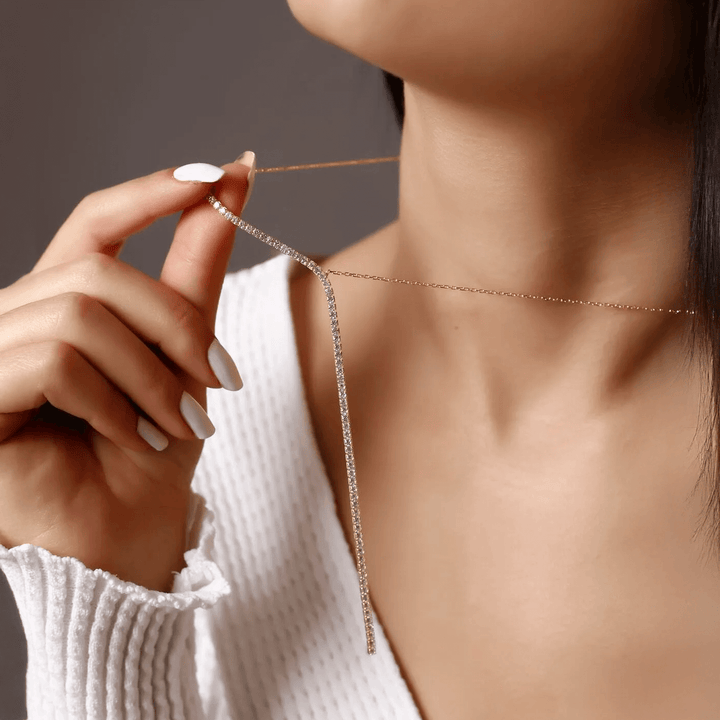 Looking for a necklace that screams "style icon" without breaking the bank? Look no further! This lariat style, featuring a charming zirconia waterway drop, is the perfect choice for those with a playful yet refined sense of style.